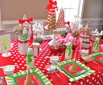 This adorable Gingerbread Playdate from the Savvy Mom's Guide came complete with aprons, hats, tutus and lots of gingerbread to decorate. The colors are totally trendy and the decor is super cute!!