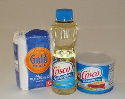 I coat the pans with pan grease. I make pan grease by mixing equal parts of white shortening, vegetable oil and flour. For example, 1 cup Crisco, 1 cup vegetable oil and 1 cup of all purpose flour.