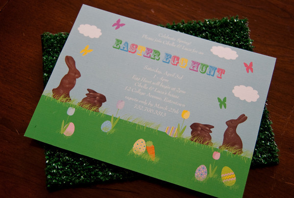 The invitations were sent with a faux grass liner inside the box for the invitation to sit on. L.O.V.E it!!