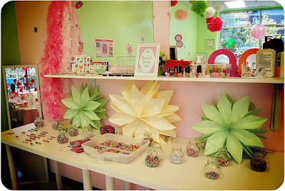We even modified this same basic frame to make this free-standing ice cream stand. But I haven't blogged about it yet, so you'll have just have to check back on my blog if you want the details about this sweet party, and how we made the stand stand, with out being against the wall.